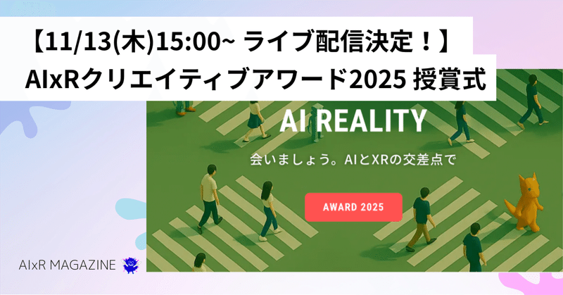 【11/13(木) ライブ配信】AIxRアワード2025 授賞式!落合陽一氏ら審査員が選ぶ「AI Reality」の未来